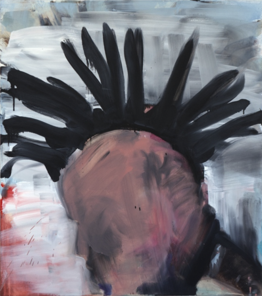 Schnell gezogene, unregelmäßige, dicke, schwarze Pinselstriche fächern sich auf um eine Fläche aus schwarz und rot verschmutztem Inkarnat. Dort, wo der frisch ins saße Schwarz getauchte Pinsel auftritt, laufen Farbtropfen die Leinwand herab. Den Hintergrund bildet helles Grau, das mit loser Bewegung von links nach rechts auf den Bildträger aufgebracht wurde. Darunter scheinen andere Farbschichten hindurch. Ganz links unten leuchtet ein Signal-Rot hervor. Am oberen Bildrand liegen helles Graublau und übermalte schwarze Linien unter dem schmutzig durchzogenen Hellgrau. – So in etwa ließe sich die 90 x 80 cm große, 2024 entstandene Malerei Dreamer beschreiben, würde man hier nicht zugleich auch den Kopf einer Person mit Irokesenfrisur erkennen. Die Malereien der 1989 in Jewpatorija auf der Krim geborenen Künstlerin Ryta Miskevych, die 2011 zum Studium nach Deutschland kam, laden stets zu einem Sehen im doppelten Sinne ein. Sie beschäftigen zum einen das Auge durch gesetzte Farbereignisse und sind zum anderen Abbilder einer meist nur schemenhaft erkennbaren, aber gleichwohl vertraut erscheinenden Wirklichkeit.